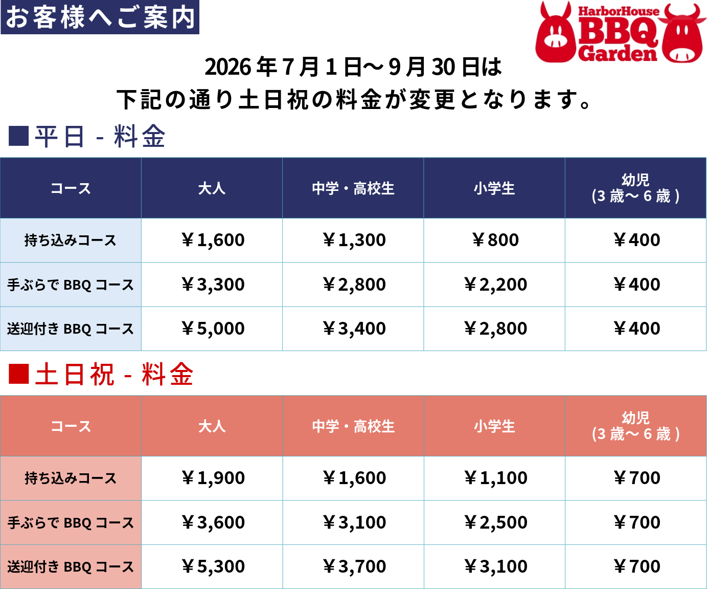いつもHARBOUR HOUSE BBQガーデンをご利用いただき、誠にありがとうございます。